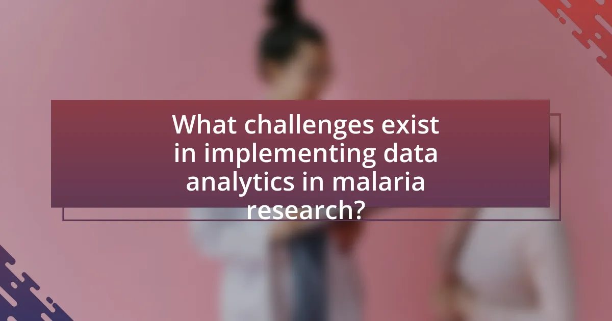 Implementing data analytics in malaria research faces several challenges, including data quality issues, integration of diverse data sources, and the need for specialized skills. Data quality is often compromised due to inconsistencies and inaccuracies in malaria case reporting, which can lead to unreliable analytics outcomes. Additionally, malaria research involves various data types, such as clinical, environmental, and genomic data, which require effective integration to provide comprehensive insights. Furthermore, there is a shortage of professionals with the necessary expertise in data analytics and malaria epidemiology, hindering the effective application of analytical techniques. These challenges can impede the advancement of malaria research and the development of effective interventions.